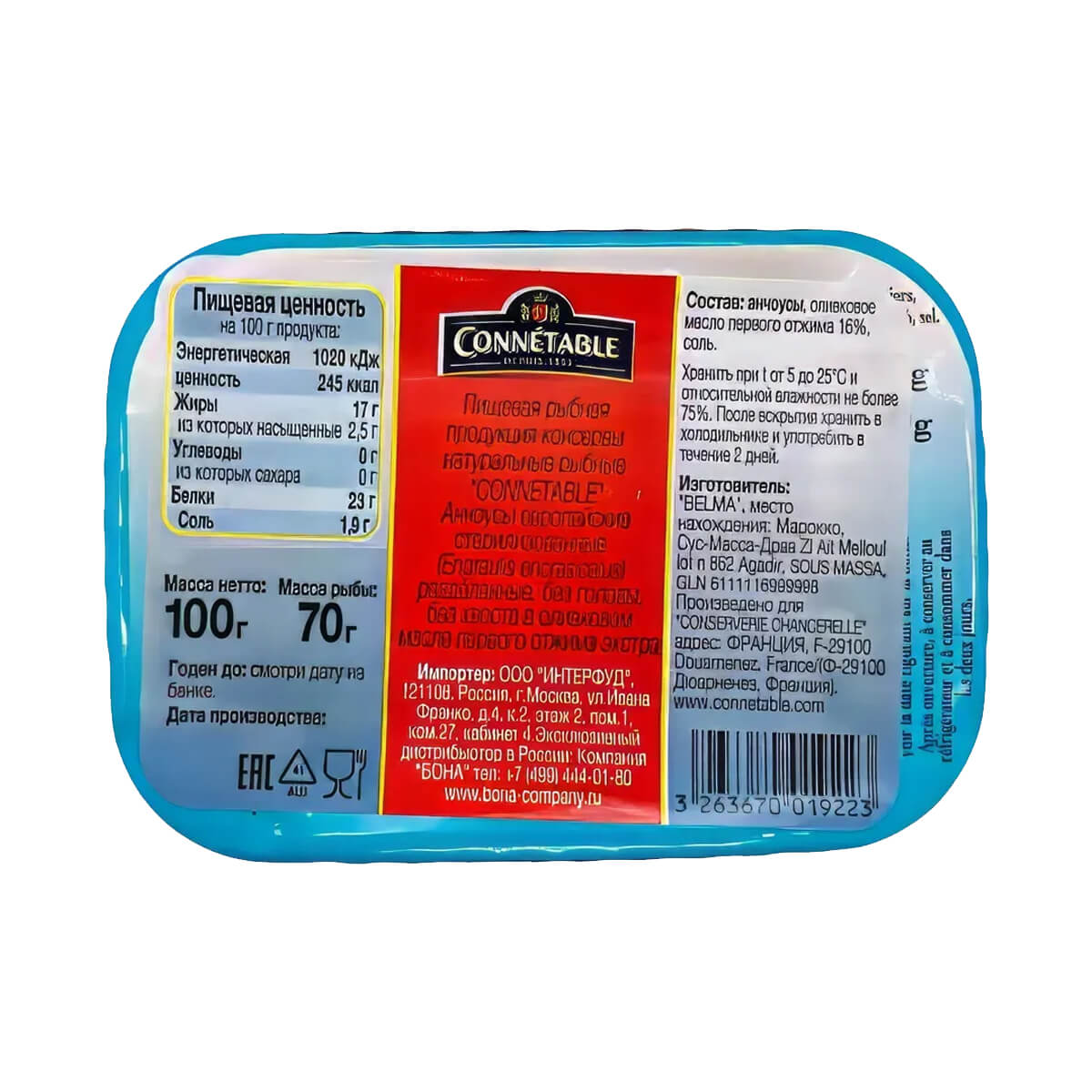 Анчоусы в оливковом масле первого отжима экстра Anchois entiers Connetable à l'huile d'olive vierge extra