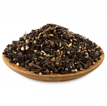 Чай Масала - это изысканный и узнаваемый купаж чая байхового сорта, богатый разнообразными индийскими специями. Его уникальная композиция ожидаемо очарует даже самых взыскательных любителей чая. Каждый ингредиент тщательно подобран для создания гармоничного и насыщенного букета. Одним из ключевых компонентов чая Масала являются шарики черного перца. Этот мощный и пряный элемент вносит согревающую остроту, а мускатный орех добавляет глубину и сложность, подчеркивая резкую, но приятную ноту. Рубленый корень имбиря придает пикантный и одновременно согревающий оттенок, который обволакивает своим теплом, делая каждый глоток по-настоящему уютным.