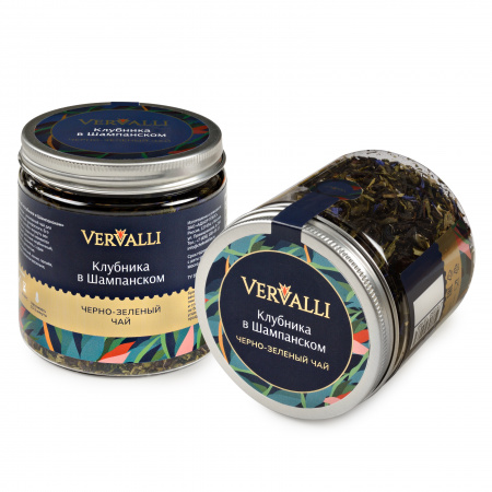 Черно-зеленый чай Клубника в шампанском VERVALLI, 60 г