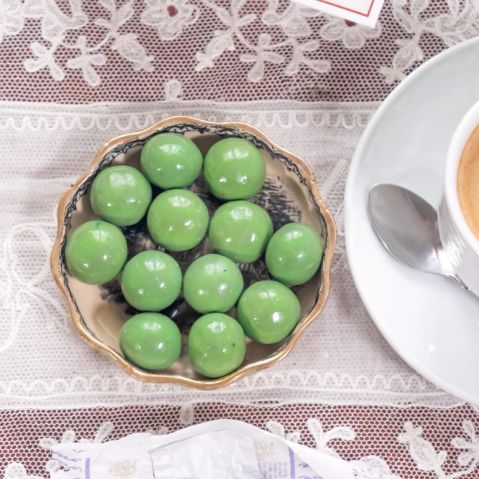 Изысканные конфетки в форме райских яблочек из яблочного мармелада, покрытого ореховом пралине с шоколадом и корицей, упакованные вручную.