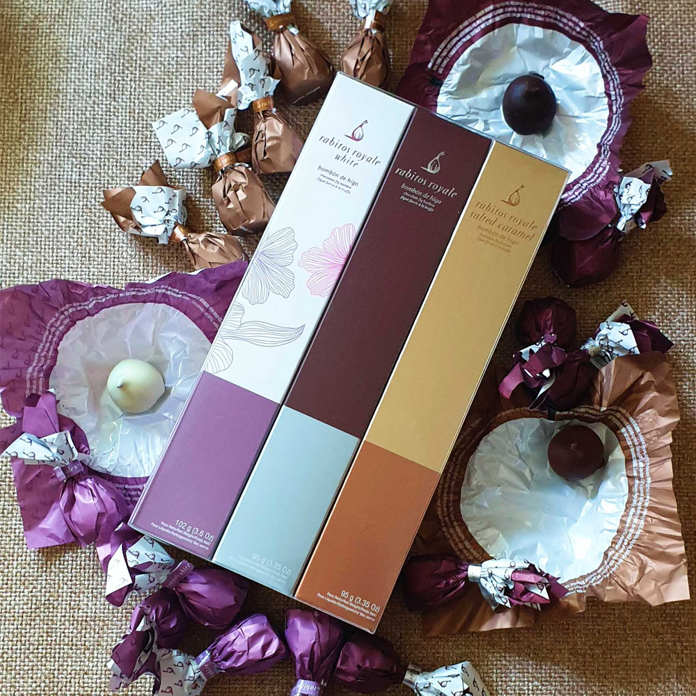 Конфеты Rabitos Royale " Ассорти три вкуса ", изготовленные из специально отобранного сухого инжира сорта Калабасита, наполненные восхитительным трюфельным кремом с добавлением бренди и покрытые тонким слоем шоколада. Натуральный тёмный шоколад и крем ганаш с оттенком бренди приятно акцентирует тонкую сладость инжира. Инжир в молочном шоколаде наполнен муссом из молочного шоколада с солёной карамелью. Инжир в белом шоколаде - самый сладкий из всей линейки, наполнен трюфельным кремом на базе белого шоколада с сушёной клубникой.