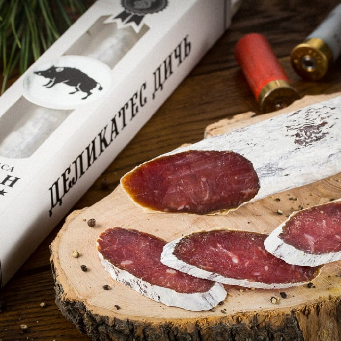 Колбаса из кабана сыровяленая в имитации плесени, в подарочной упаковке, Деликатес Дичь, 210г