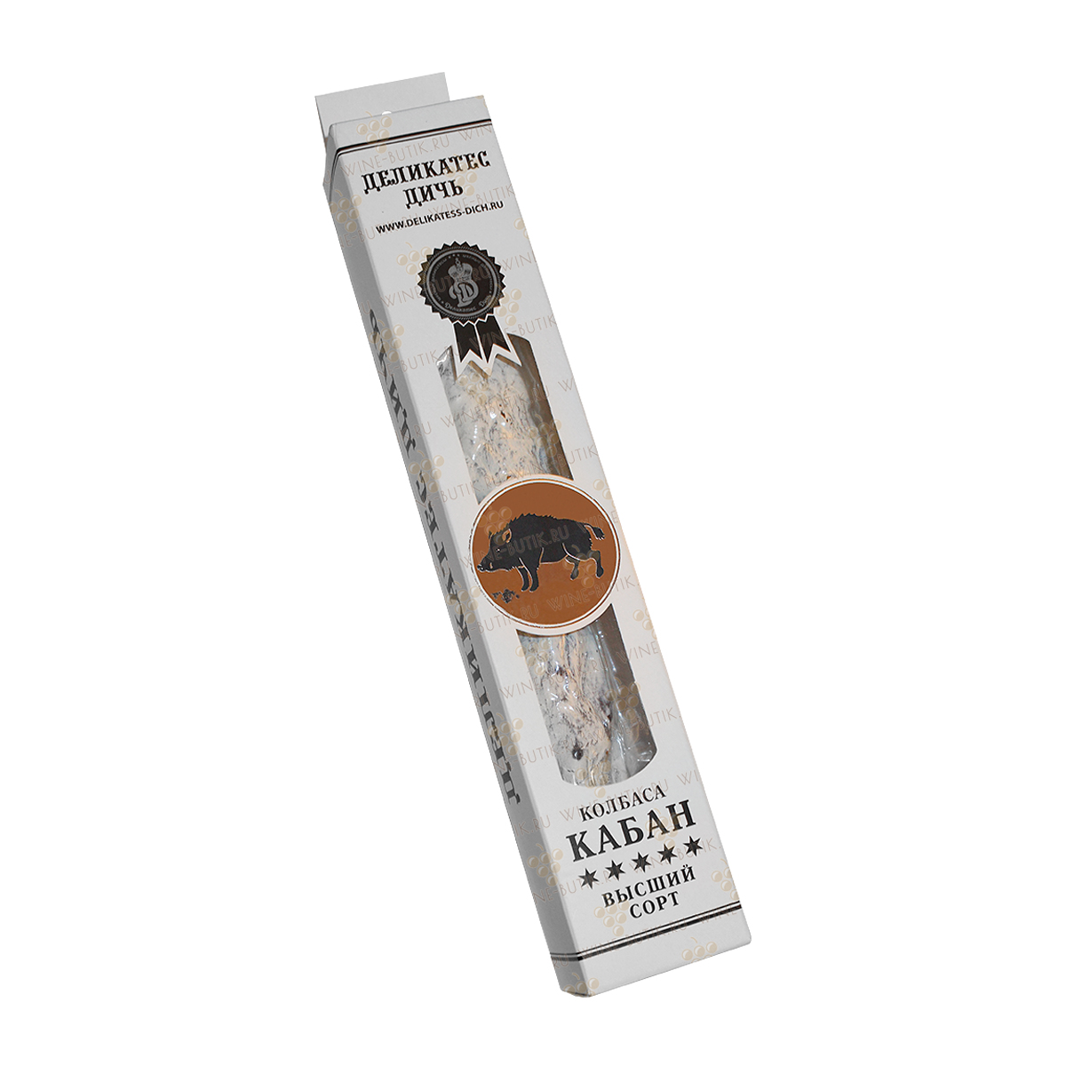 Колбаса из мяса Кабана в имитации плесени сырокопченая, в подарочной упаковке