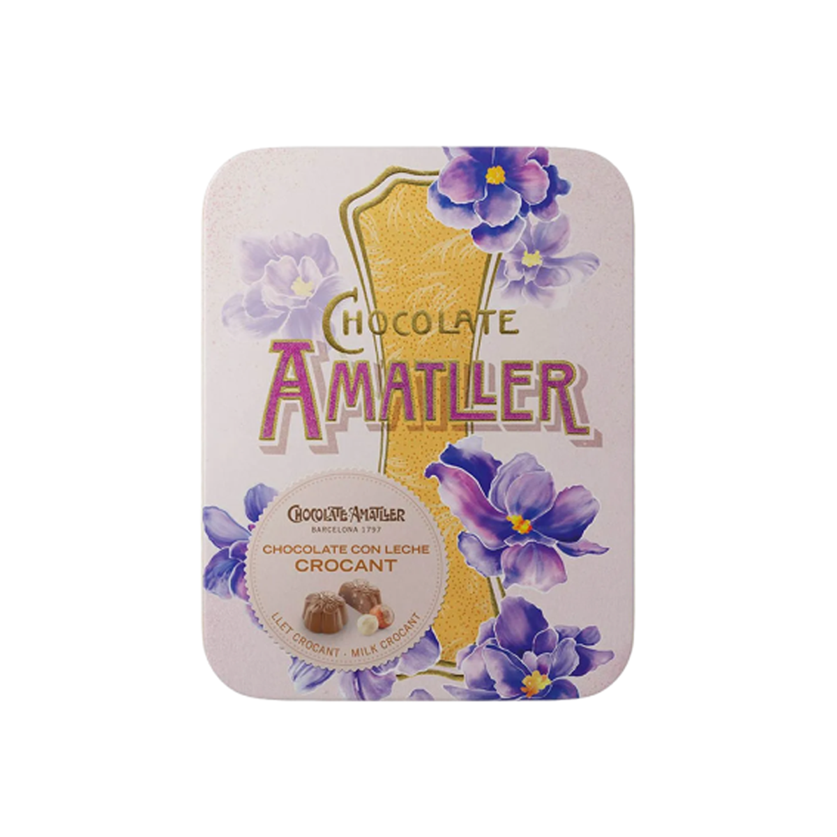 Конфеты из молочного шоколада с пралиновой начинкой в жестяной банке FLORS CROCANT LATA