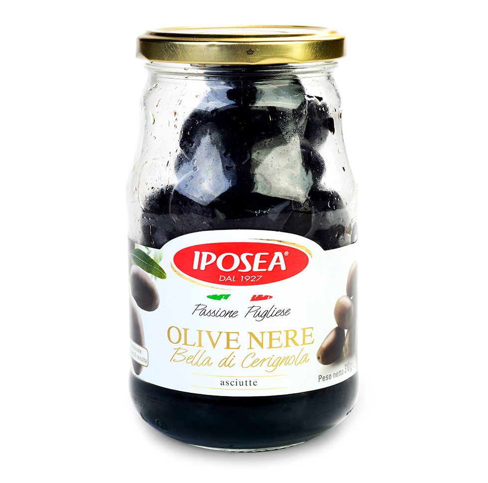 Маслины чёрные Iposea Белла Чериньола без косточки, 310 мл (сухие)