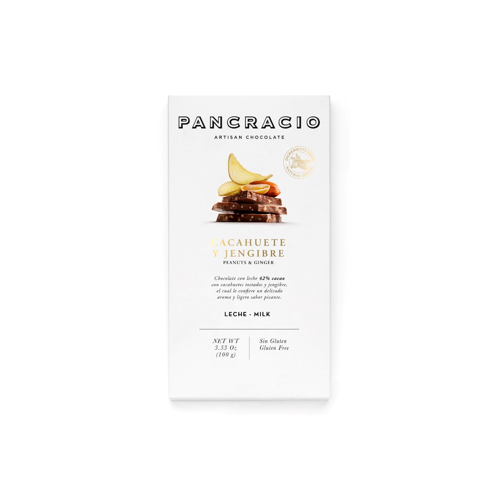 Молочный шоколад с арахисом и имбирем Pancracio, 100 г, Испания