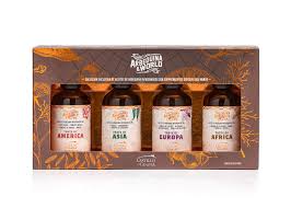 Мы хотим пригласить вас в гастрономическое путешествие по специям Европы, Америки, Азии и Африки в 4-х уникальных вкусах. Вкус Америки вызывает дымные ароматы, а вкус Азии - цитрусовый взрыв. Со своей стороны, вкус Европы напоминает нам о зеленых вкусах и ароматах, а вкус Африки обеспечивает теплую, ароматическую глубину.