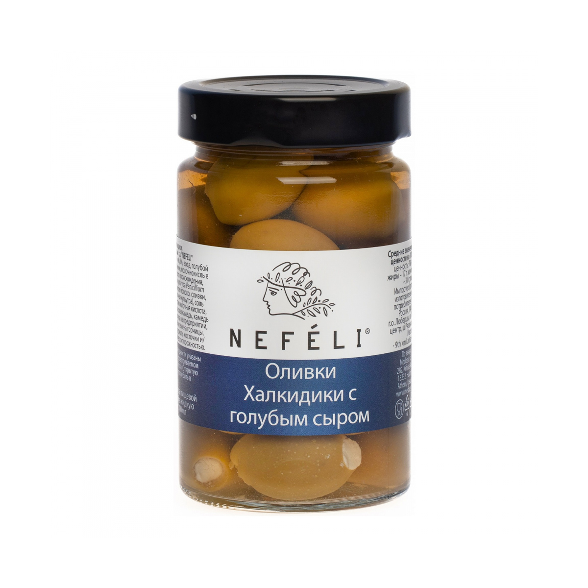Оливки Халкидики с голубым сыром NEFELI, 300 г (Греция)