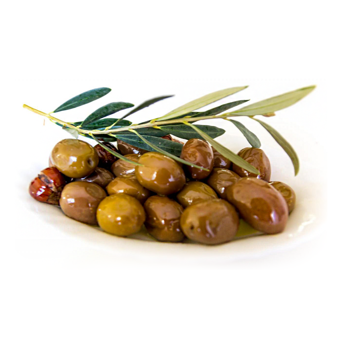 • Оливки с косточкой (57,1 %); вода; морская соль; регуляторы кислотности: молочная кислота, лимонная кислота. Возможно содержание фрагментов орехов. Не содержит ГМО.