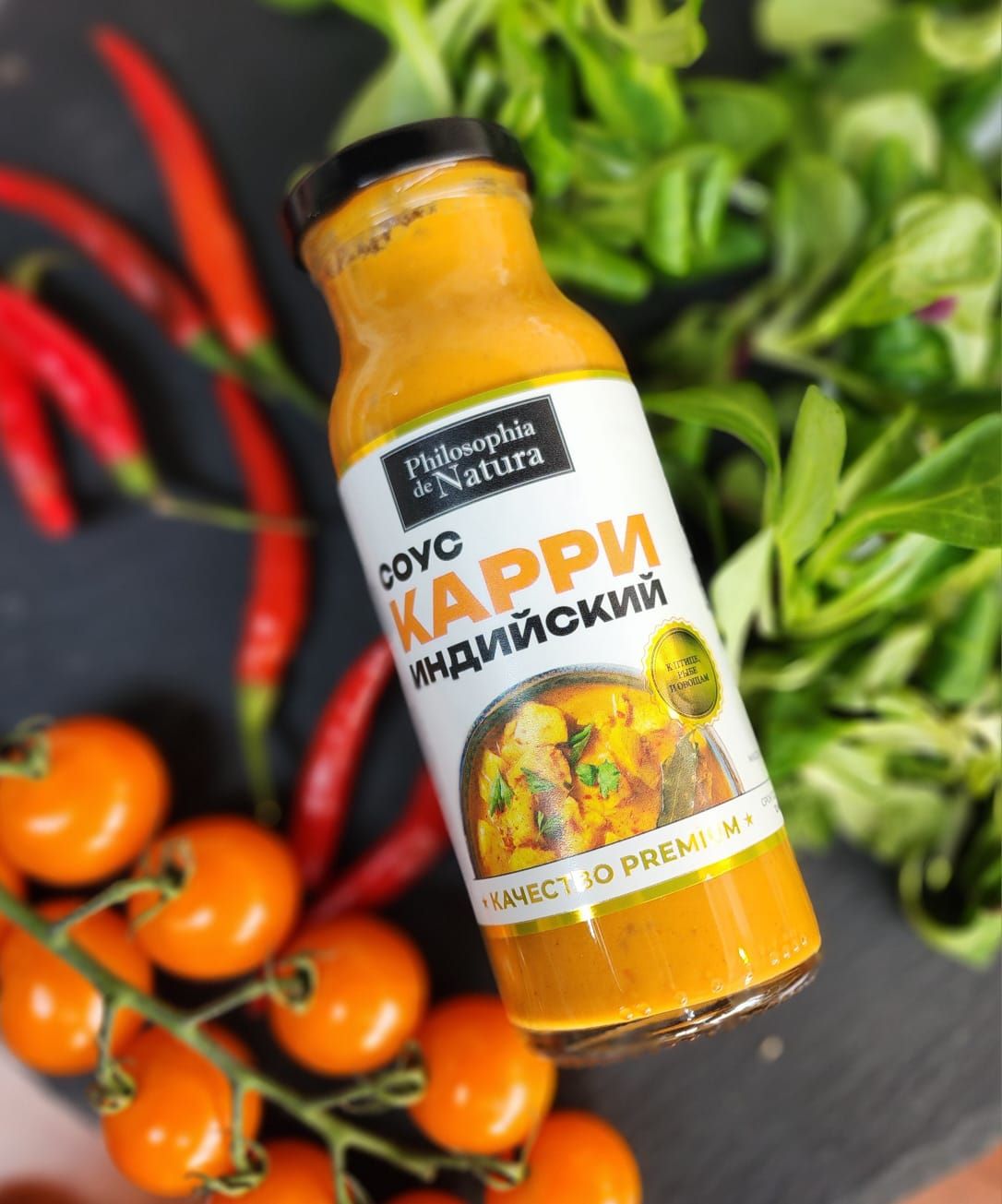 • Пюре томатное, сыворотка молочная сухая, вода питьевая, масло подсолнечное рафинированное дезодорированное, специи: горчица семена, специя карри (куркума, кориандр, тмин, пажитник, имбирь, чеснок сушеный, укроп, чили, лавр, гвоздика, кардамон), куркума, перец чили молотый, имбирь сушеный молотый, сок апельсиновый концентрированный, сахар, соль пищевая, чеснок свежий, загуститель - крахмал кукурузный модифицированный, натуральный пищевой ароматизатор - дрожжевой экстракт, карри, консервант - сорбат калия, комплексная пищевая добавка «Стаф гель» (натуральные камеди растительного происхождения), регулятор кислотности - молочная кислота.