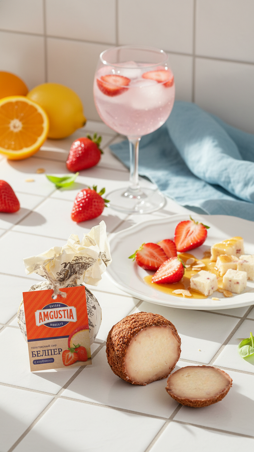 Сыр полутвердый Белпер клубника AMGUSTIA