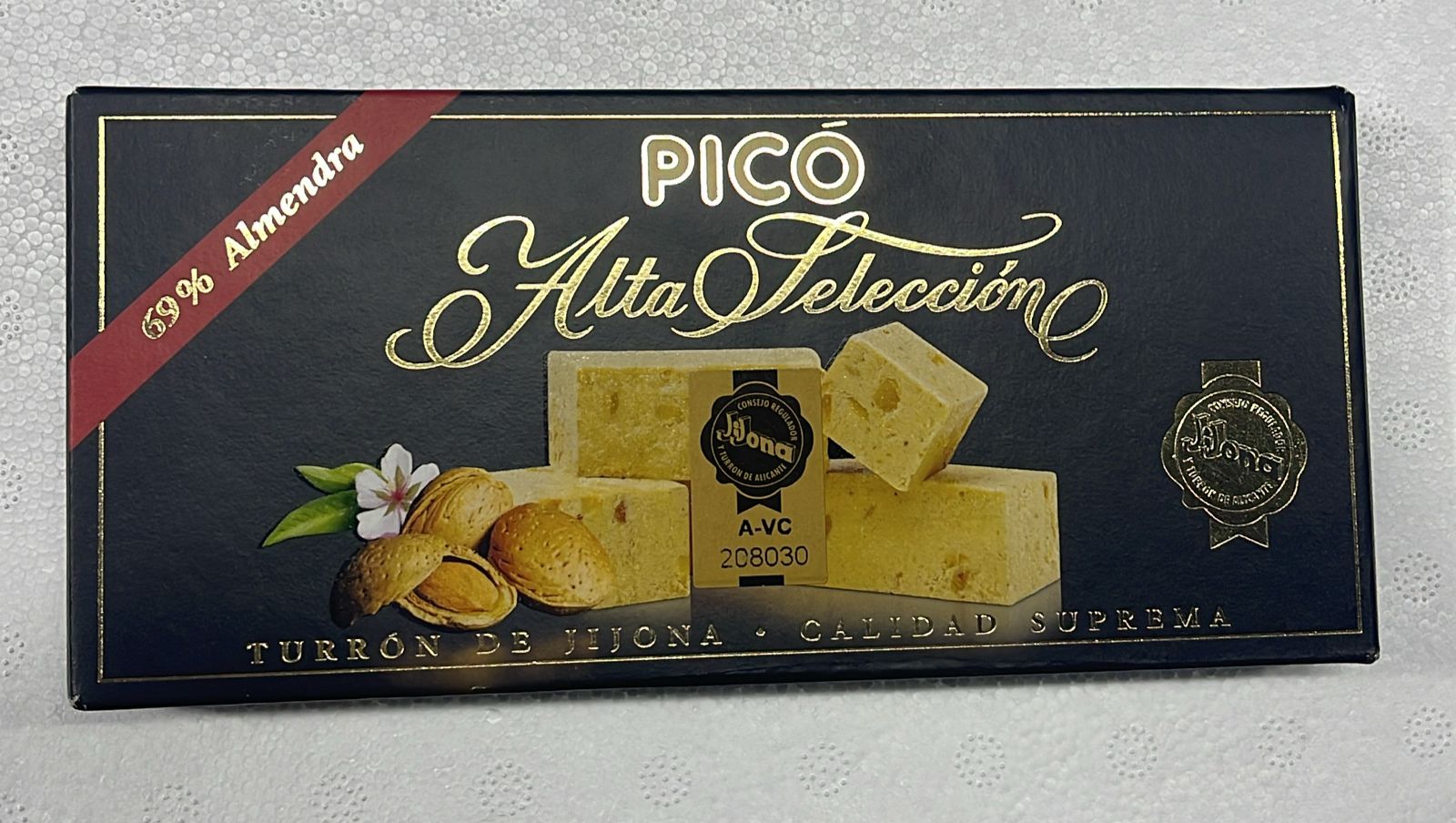 Эта нуга - классическая нуга Пико. Она содержит 64% поджаренного миндаля, а также мед (12%), яичный белок и сахар. Она изготовлена по традиционному семейному рецепту, которому более 75 лет.