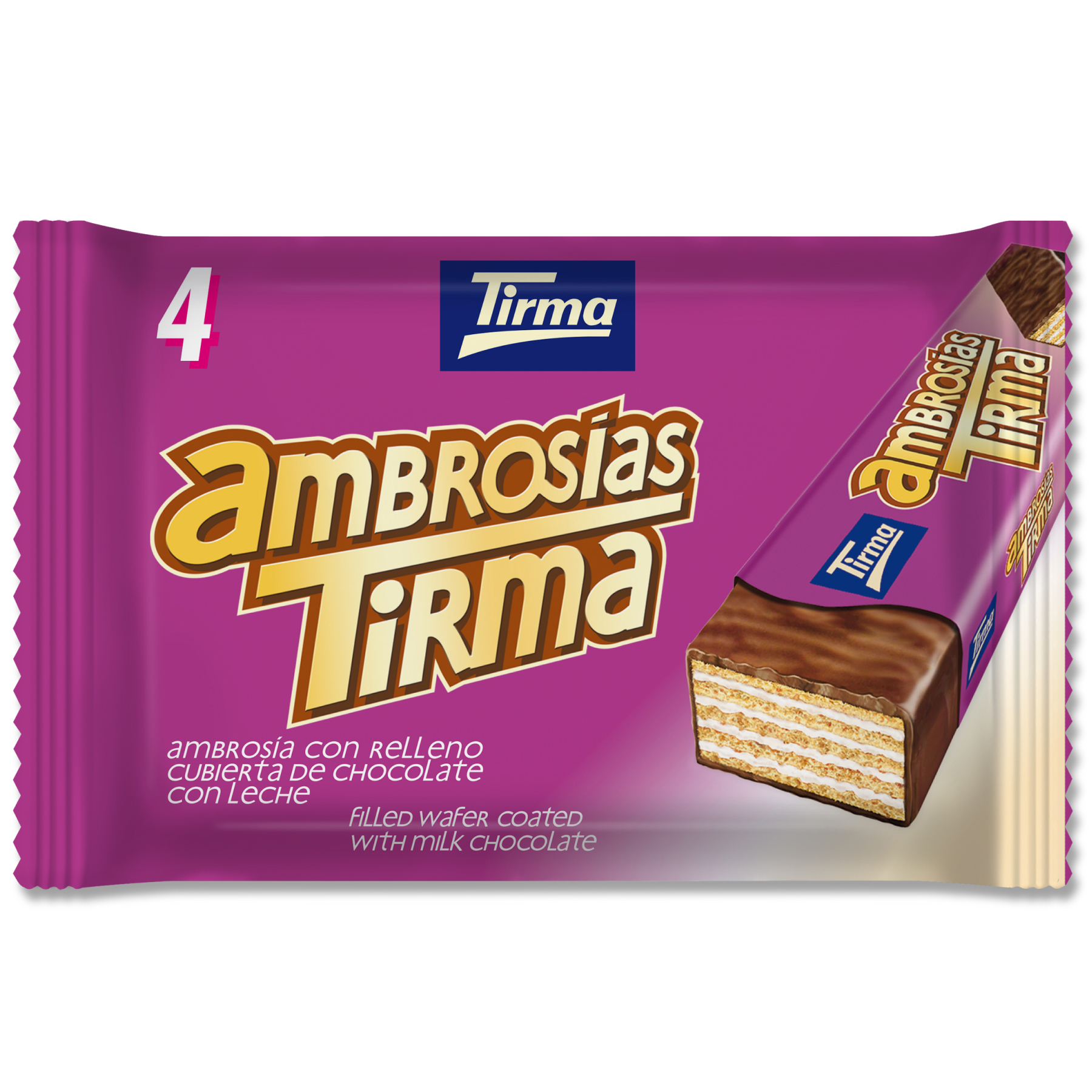Вафельный батончик Tirma в молочном шоколаде, 40% какао, уп. 4 шт, 86 г