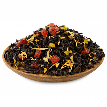 Уникальный и неповторимый напиток, который порадует вас своим ярким вкусом и ароматом. Этот чай изготовлен на основе высококачественного ассамского чая с добавлением рубленого ананаса, крупной брусники и вишни, а также лепесточков календулы и натуральных эфиров.