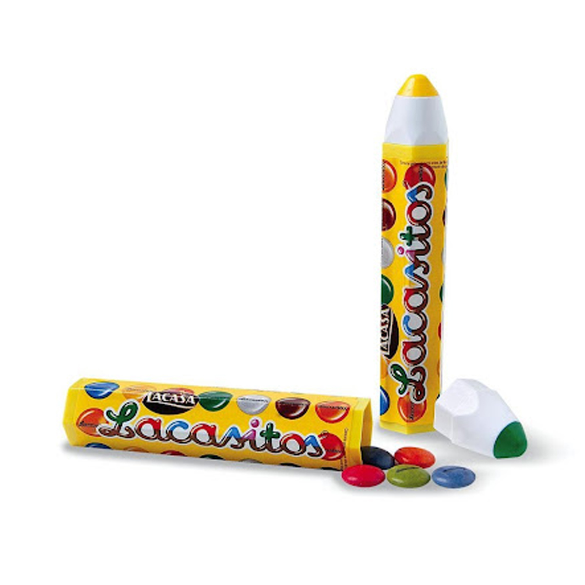 Забавные тюбики Lacasitos в форме карандашей, которыми можно рисовать.