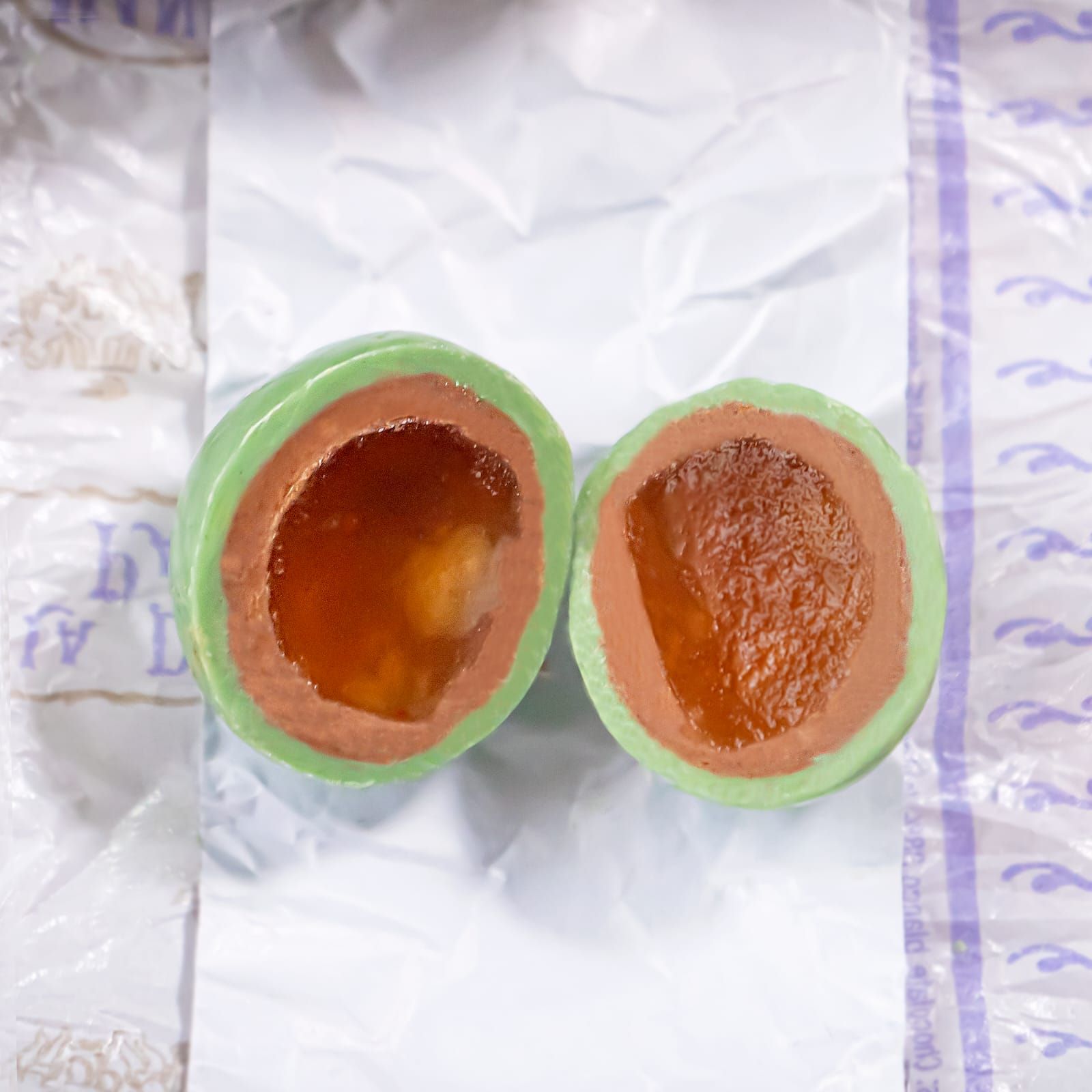 Изысканные конфетки в форме райских яблочек из яблочного мармелада, покрытого ореховом пралине с шоколадом и корицей, упакованные вручную.