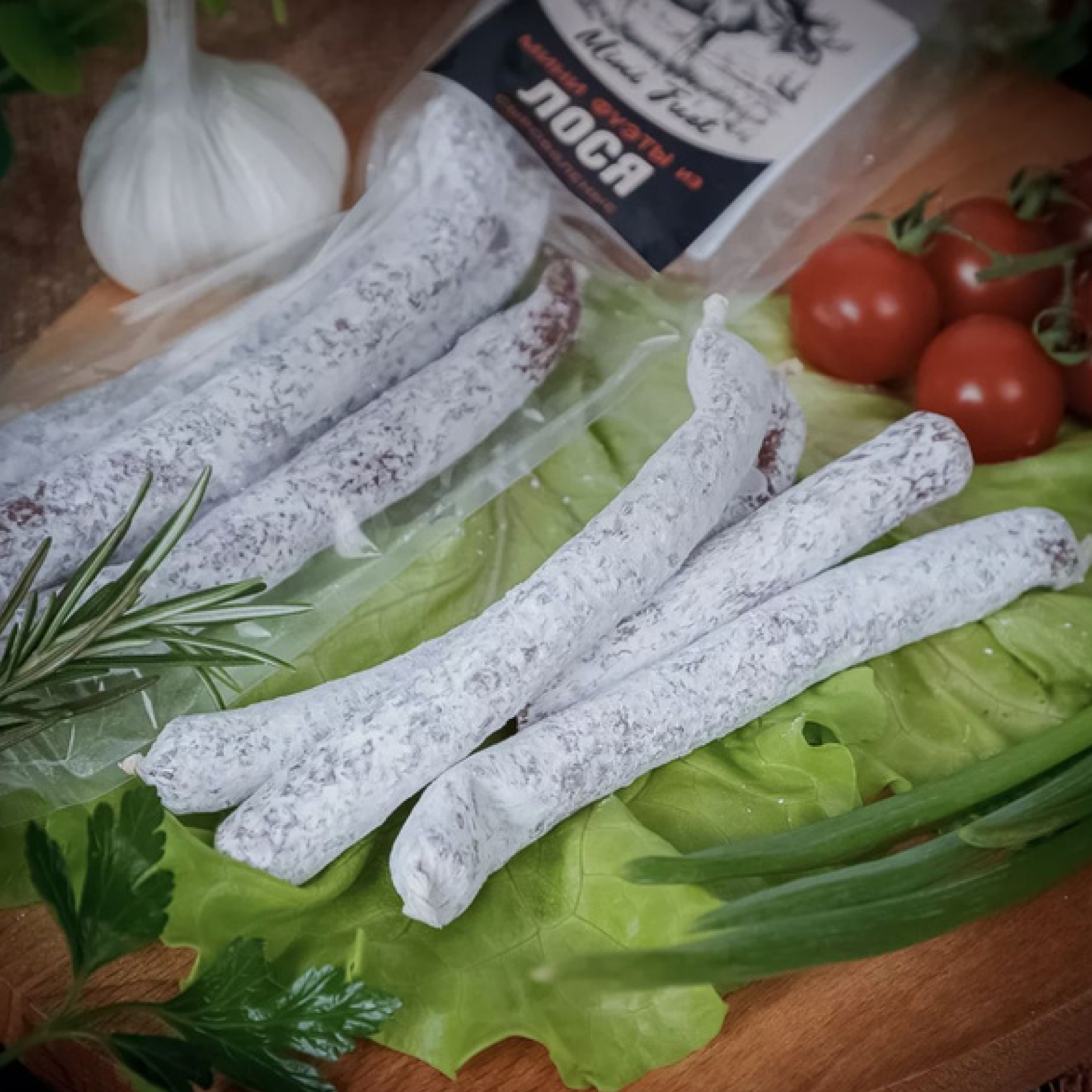 Эксклюзивная сыровяленая колбаса из Лося изготовлена только из натурального сырья и специй.