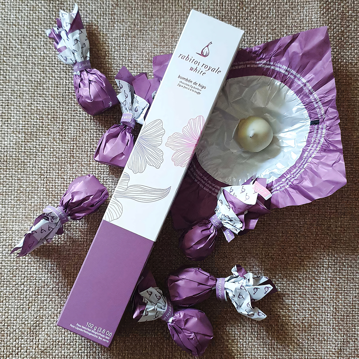 Инжир в белом шоколаде Rabitos Royale. Сорт инжира “Тыковка” из региона деревни Алмоарин, уникальность которого в восхитительной сочности и необыкновенной сладости. Инжир с трюфельным кремом из белого шоколада с добавлением сушёной клубники, покрыт тонким слоем белого шоколада.