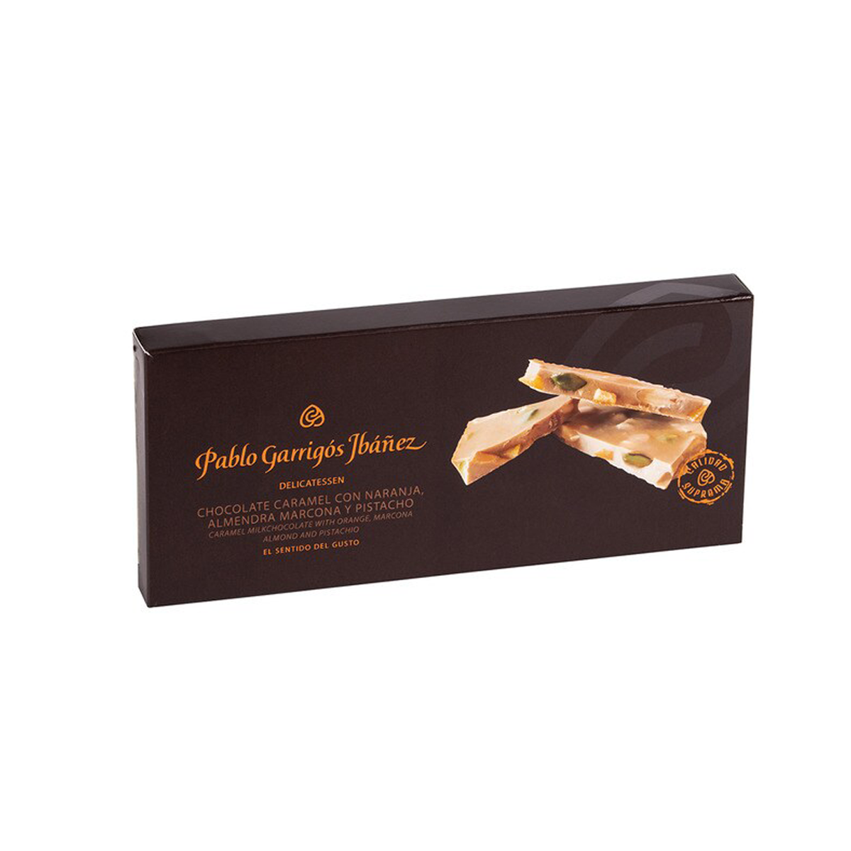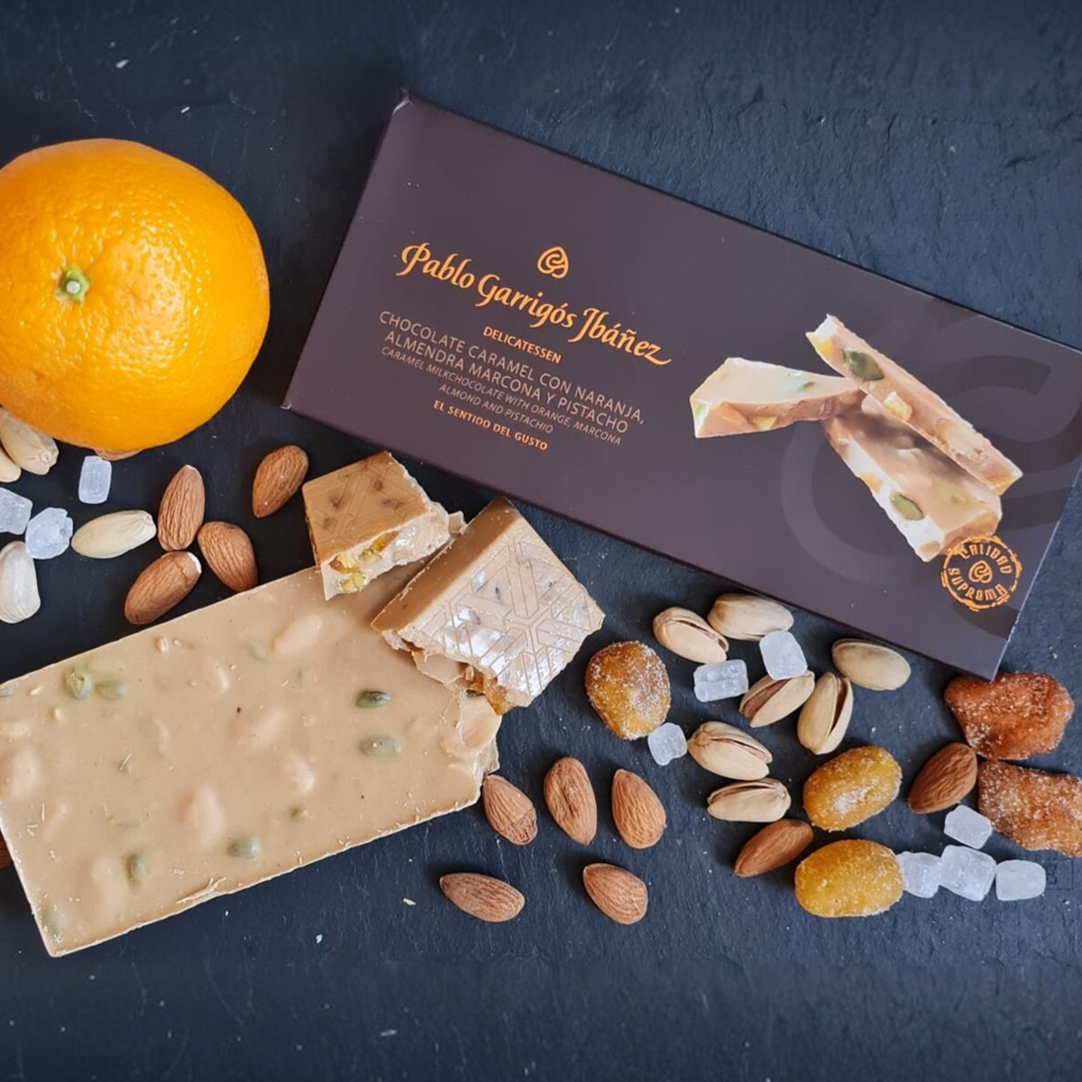 Туррон Pablo Garrigos Delicatessen из карамельного шоколада с апельсином, миндалём и фисташками - 200 г (Испания)