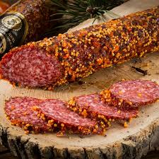 • Мясо кабана, говядина, шпик, соль, французская горчица, перец черный, перец болгарский красный, мускатный орех, фиксатор окраски: нитрит натрия, соль, кардамон.