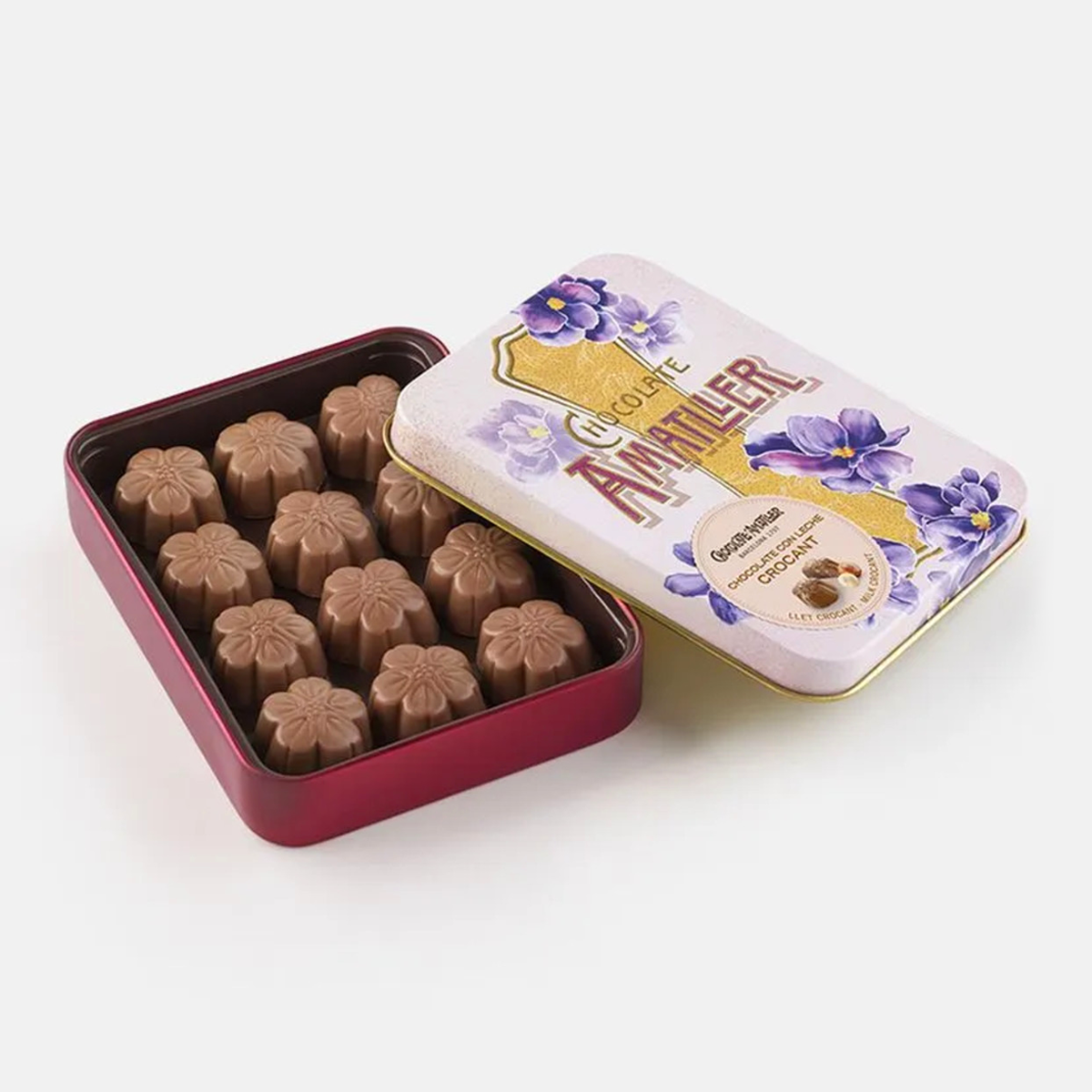 Конфеты из молочного шоколада с пралиновой начинкой в жестяной банке FLORS CROCANT LATA
