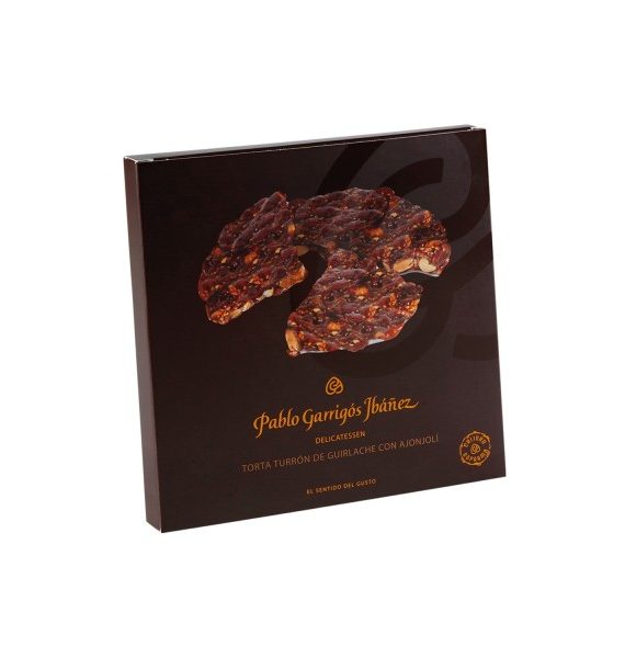 Миндальный туррон с кунжутом - твёрдый туррон грильяжного типа из миндаля сорта Маркона с добавлением цельного кунжута. Орехи заливаются карамелью на основе тросникового сахара и розмаринового мёда (15%).