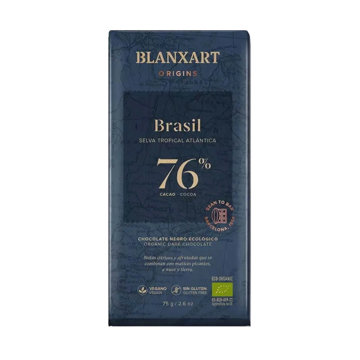 Органический плантационный темный шоколад Blanxart Brasil 76%, 75 г