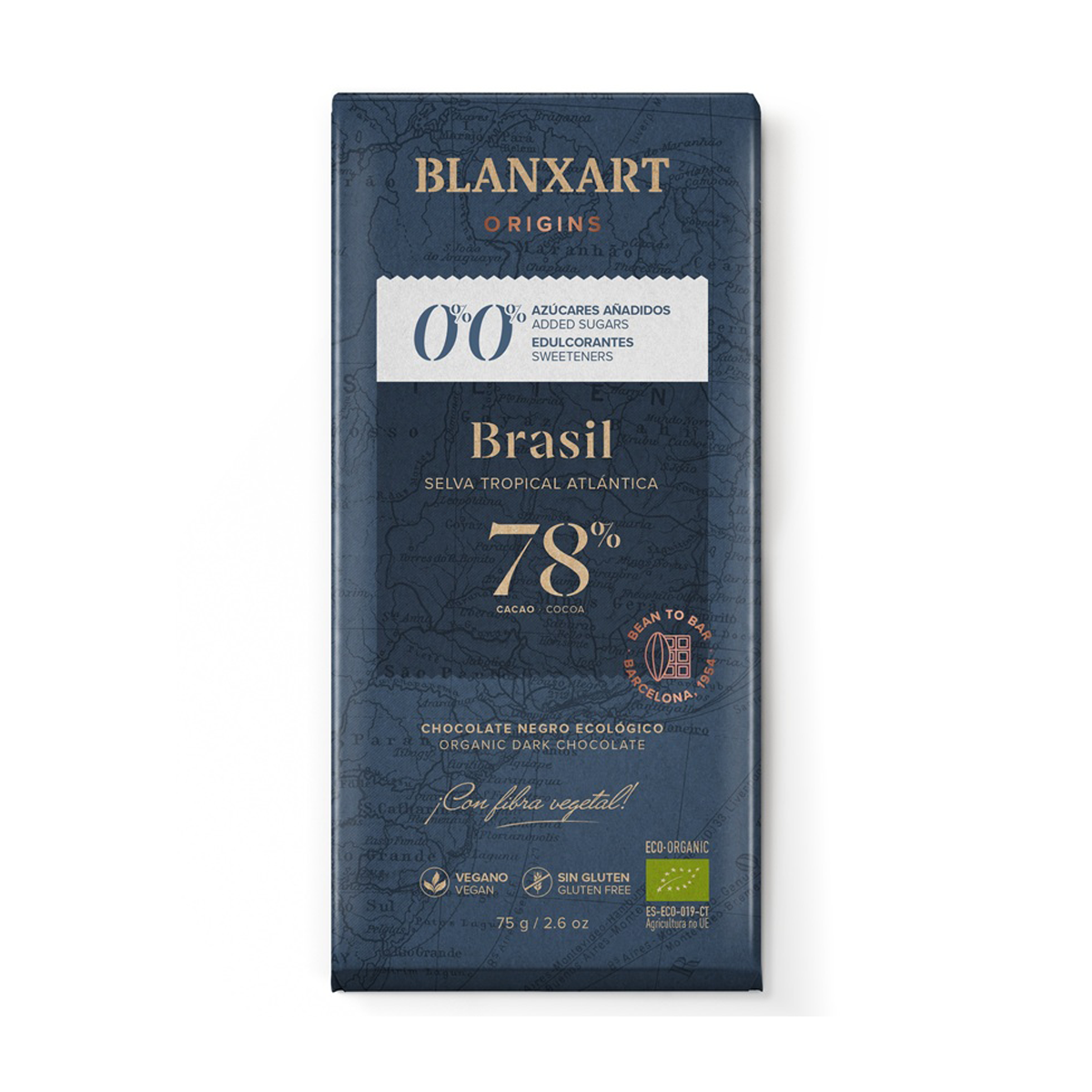 Органический плантационный шоколад 78% без сахара Blanxart Brasil, 75 г