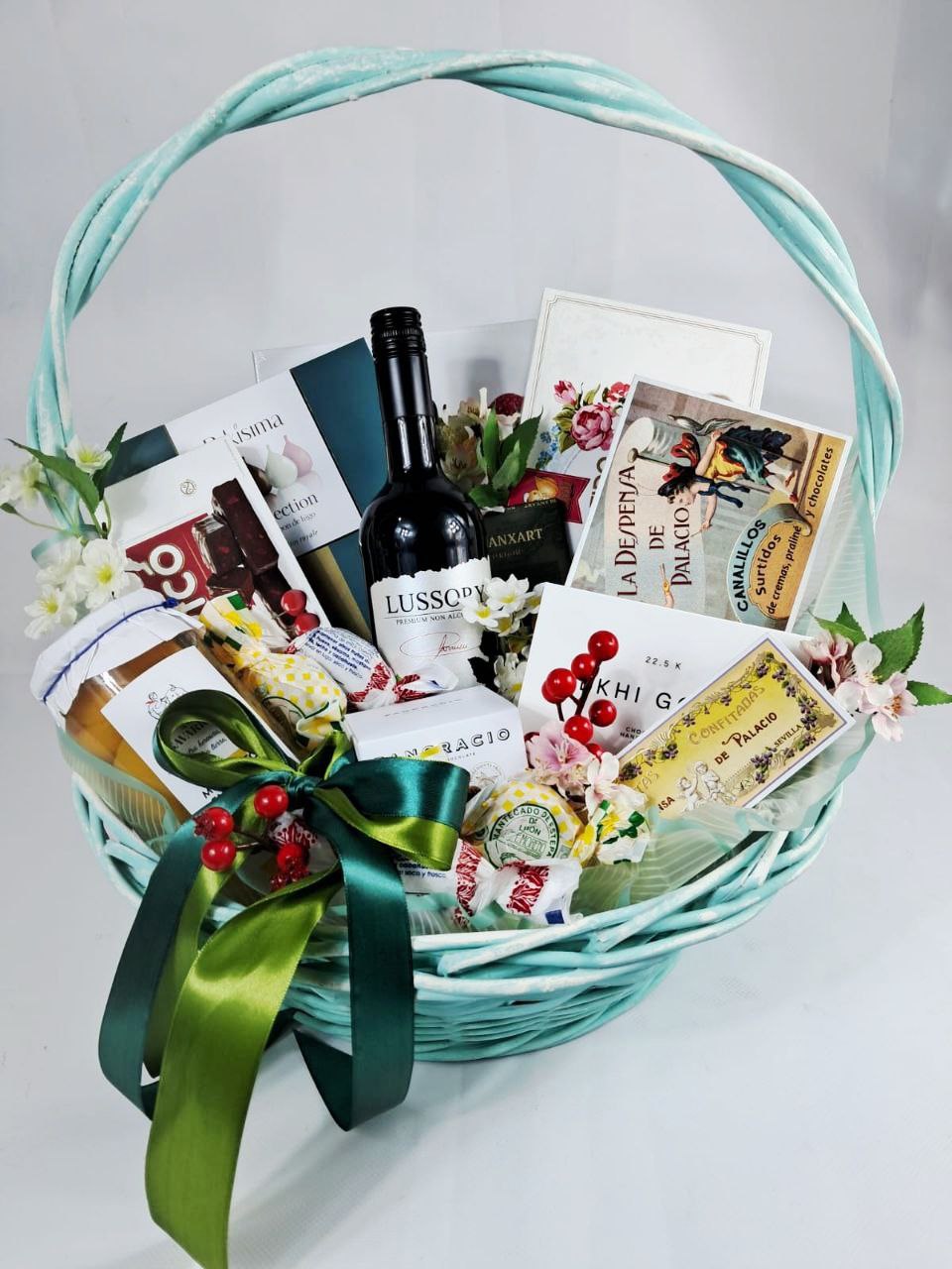 Плетеная корзина Италия средняя бирюзовая 43 см