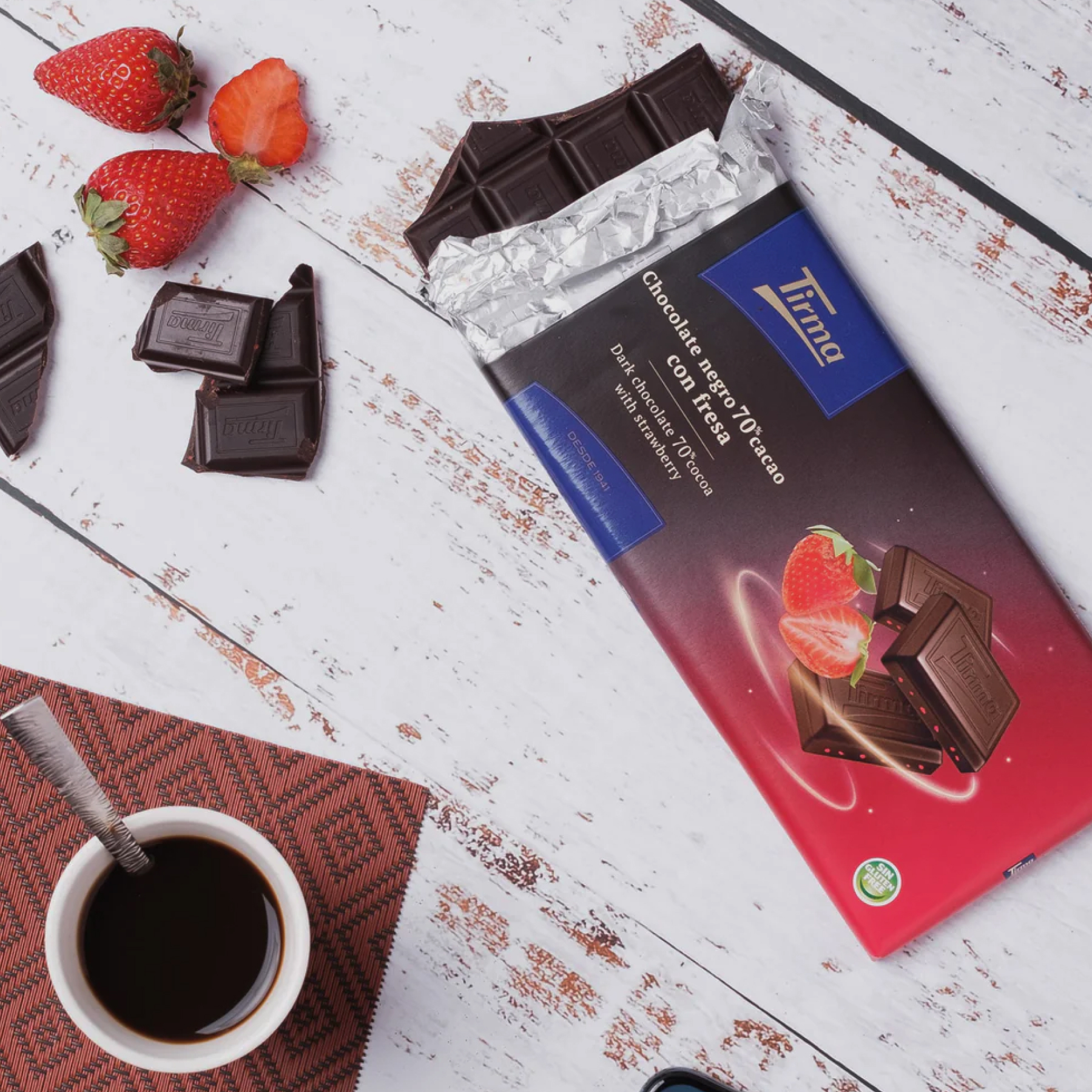 Шоколад темный Tirma с клубникой 125г, Испания