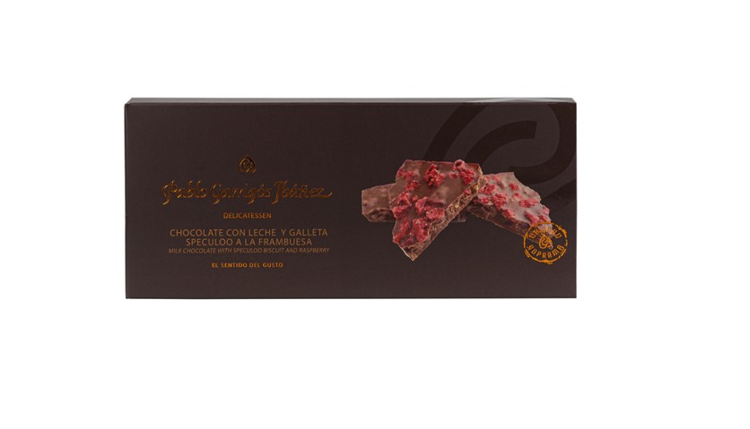 Шоколадный туррон с малиновыми хлопьями Milk chocolate with speculoo bisquit