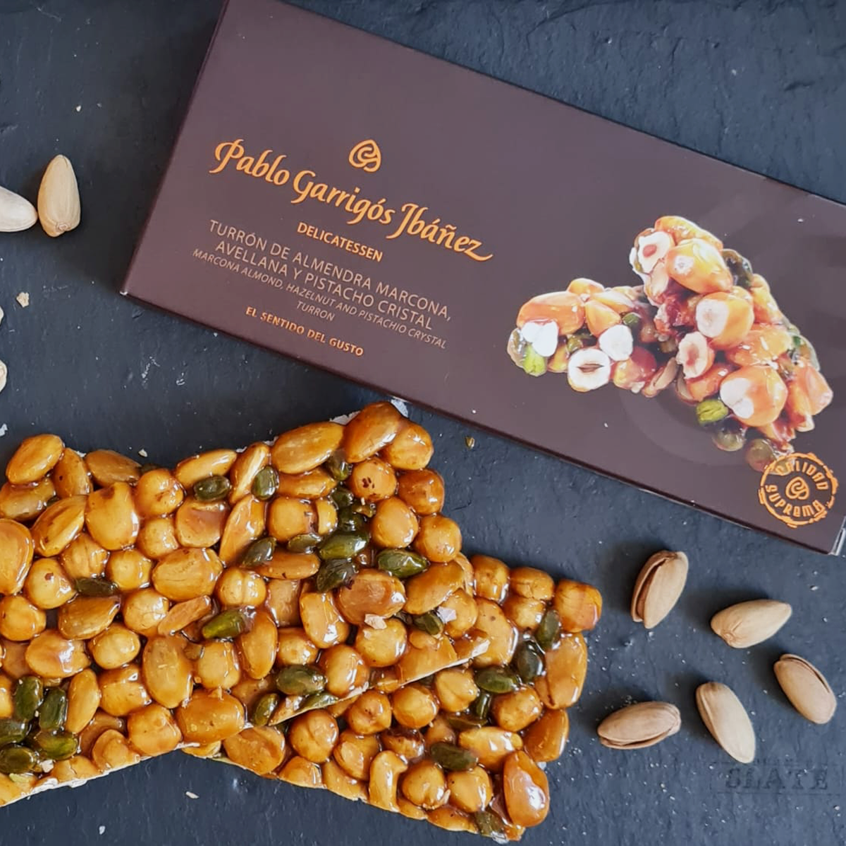 Твердый туррон с миндалём Маркона, фундуком и фисташками Turron de Almendra Marcona, Avellana y Pistacho cristal