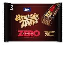 Вафли с начинкой в темном шоколаде без сахара Ambrosía ZERO 70% cocoa, no added sugars (3 units x 21,5 g)
